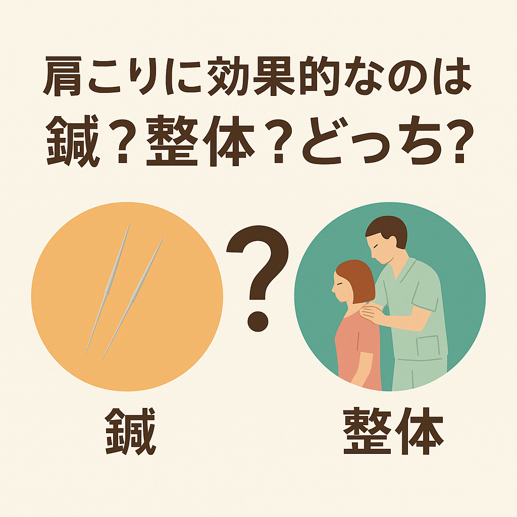 肩こりに効果的なのは鍼?整体?どっち? 公開日:2025年12月3日 スタッフブログ 「慢性的な肩こり、マッサージしてもすぐ戻ってしまう…」そんなお悩みをお持ちではありませんか? 肩こりの改善には「鍼」と「整体」という2つの代表的なアプローチがあります。それぞれに特徴や得意分野があり、体の状態によって最適 […] 続きを読む